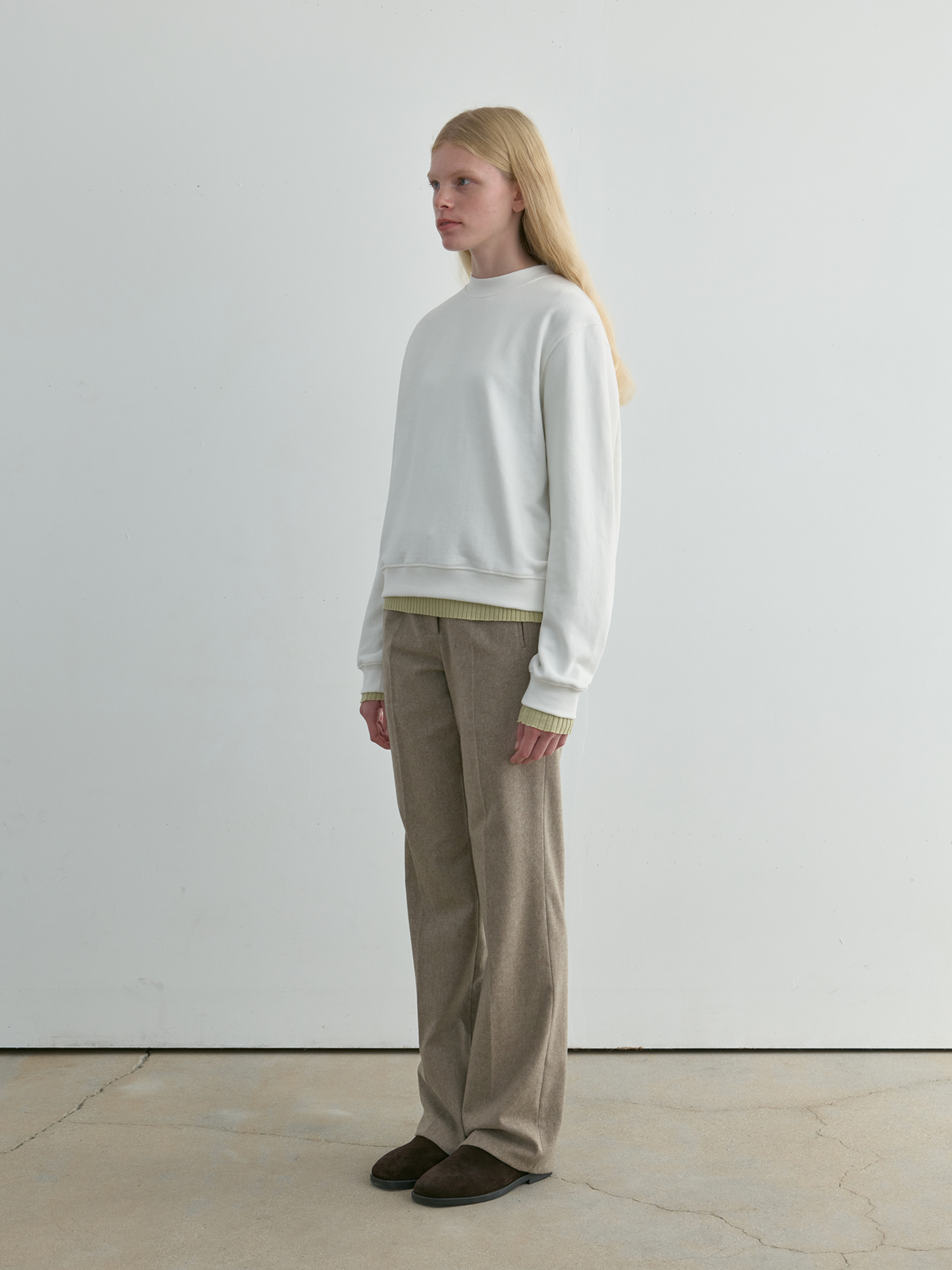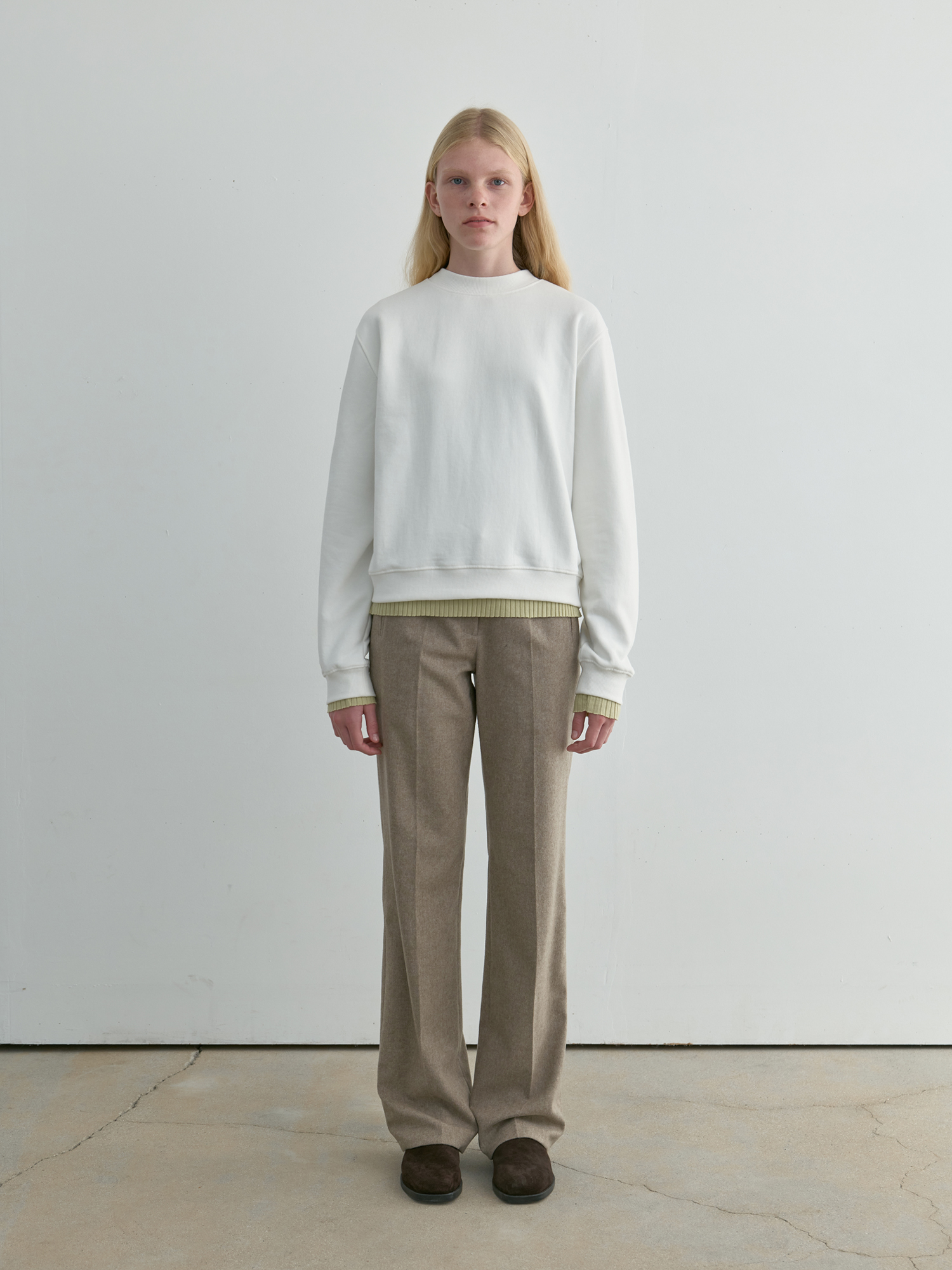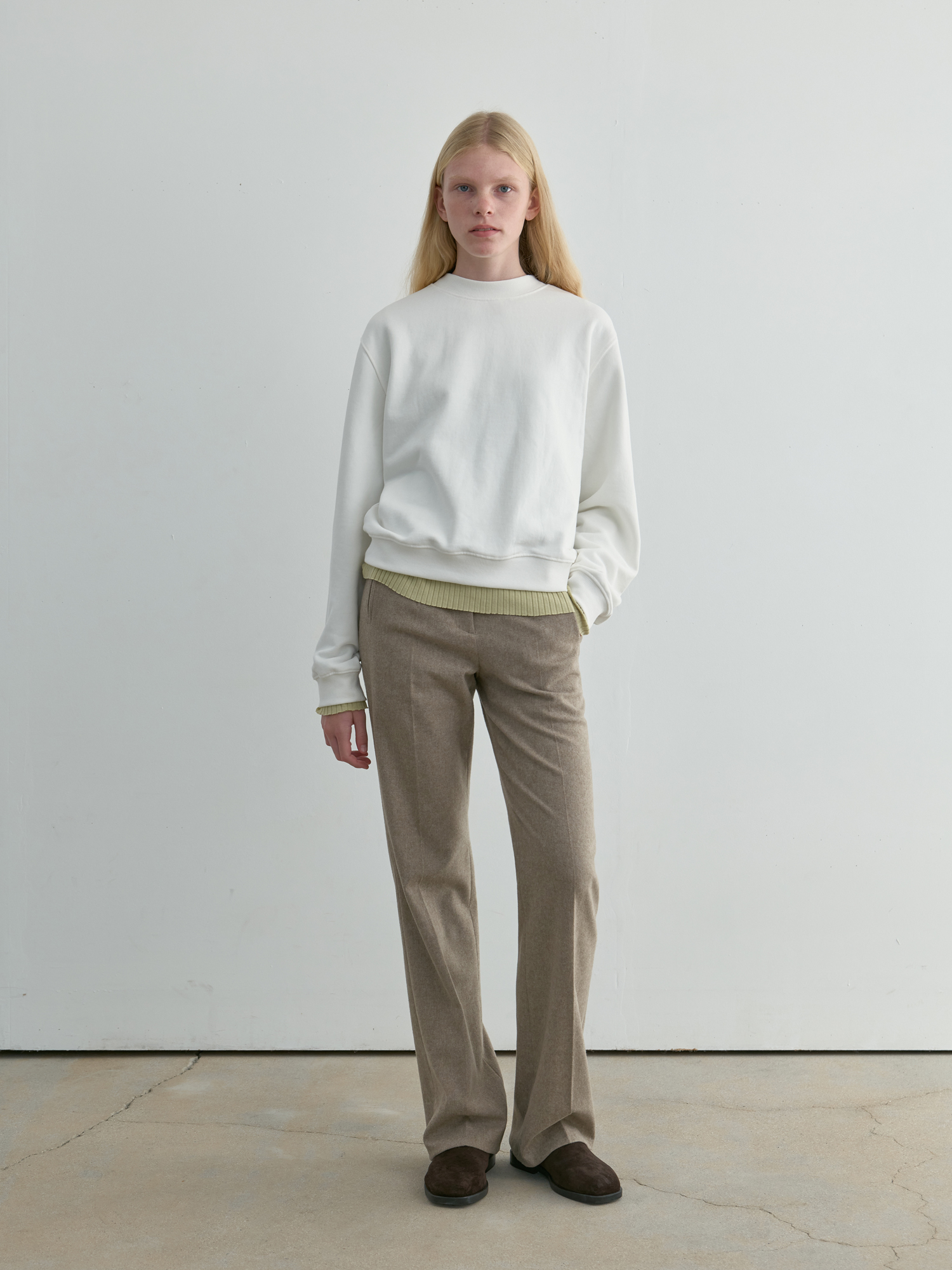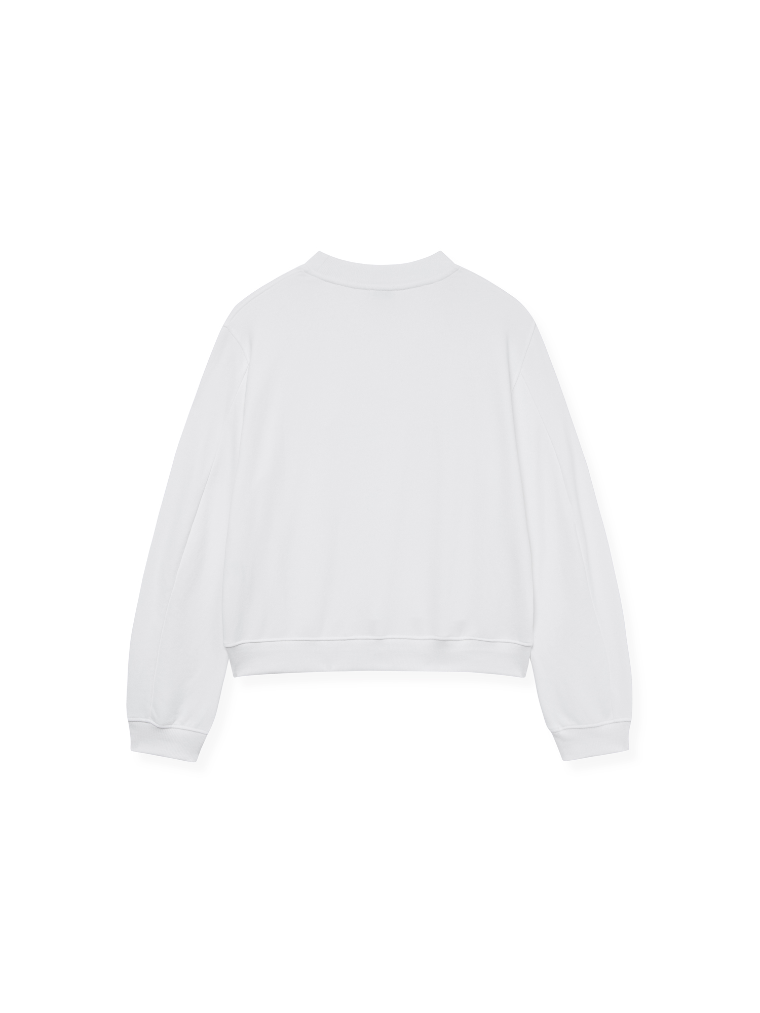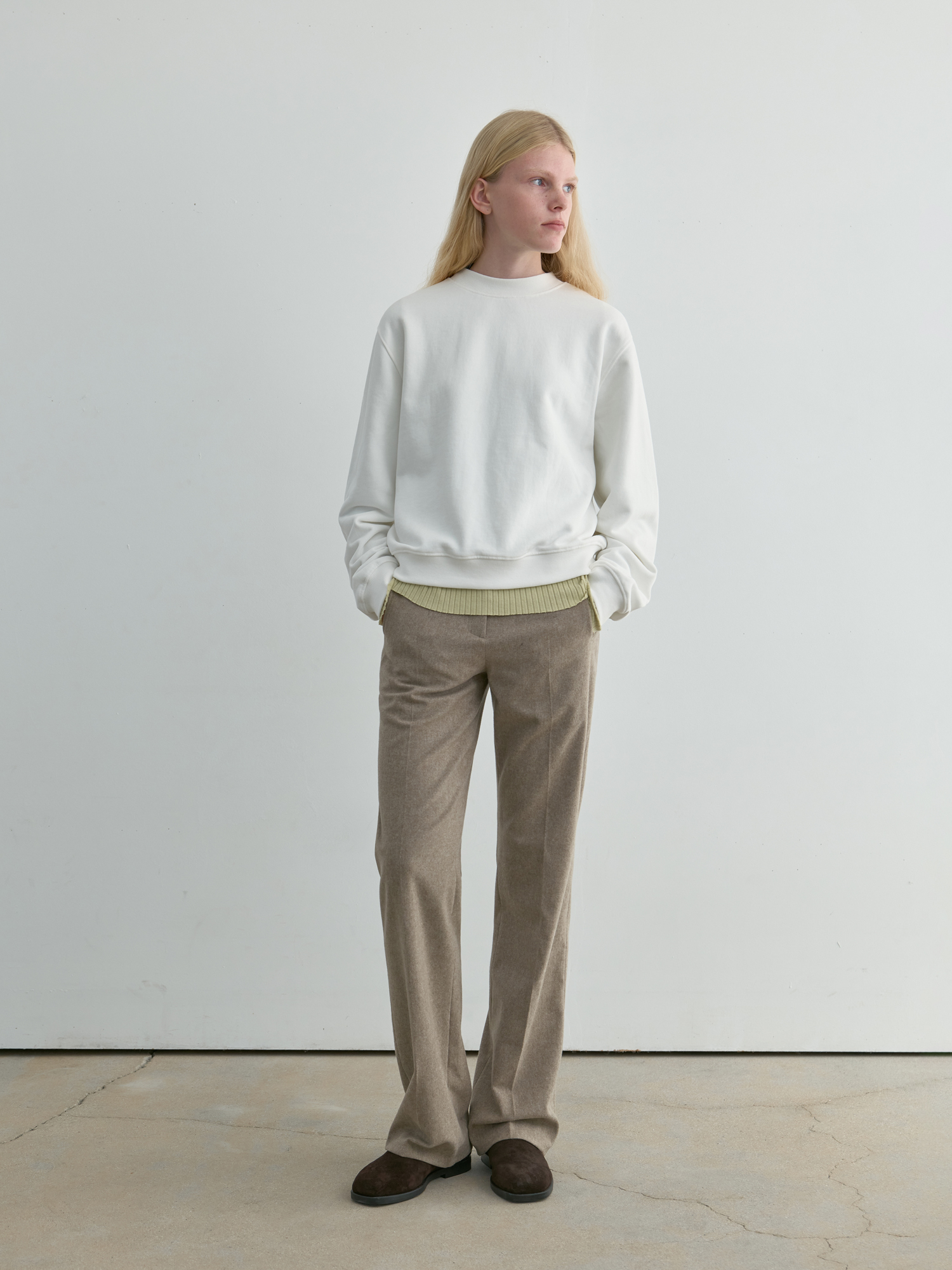 오가닉 코튼으로 제작된 오프화이트 맨투맨입니다. 힙 상단에 걸쳐지는 세미 크롭 기장과 여유 있는 박스 핏이 정돈된 비율을 보여주며, 2장 소매 패턴으로 자연스러운 라운드 쉐입이 연결됩니다. 두께감이 두껍지 않은 워시드 쭈리 원단으로 부드럽고 편안하게 착용할 수 있으며, 단독은 물론 이너로도 활용하기 좋은 아이템입니다. |