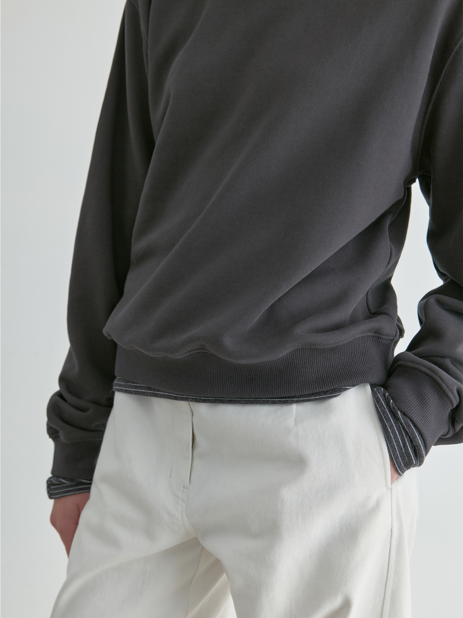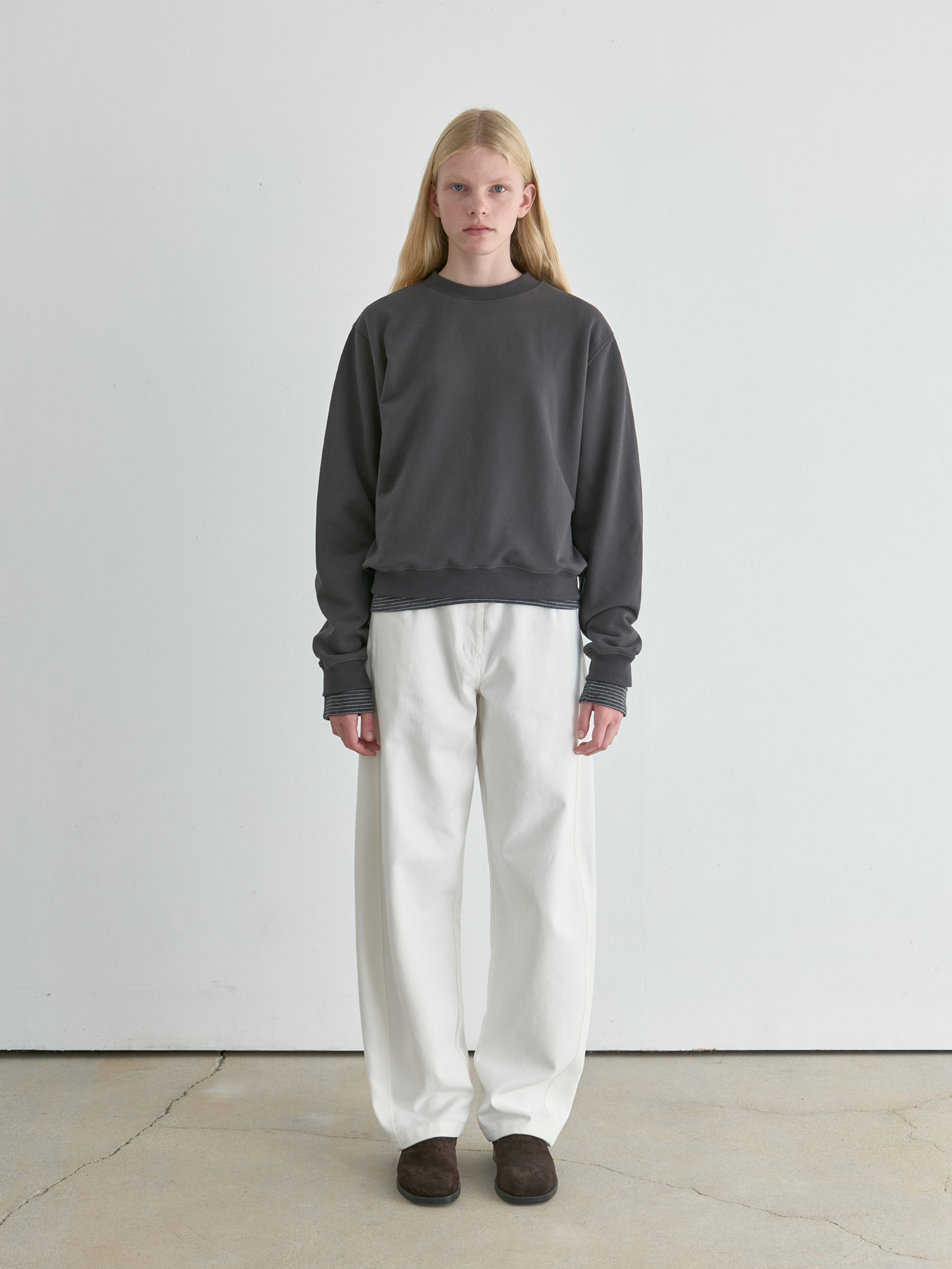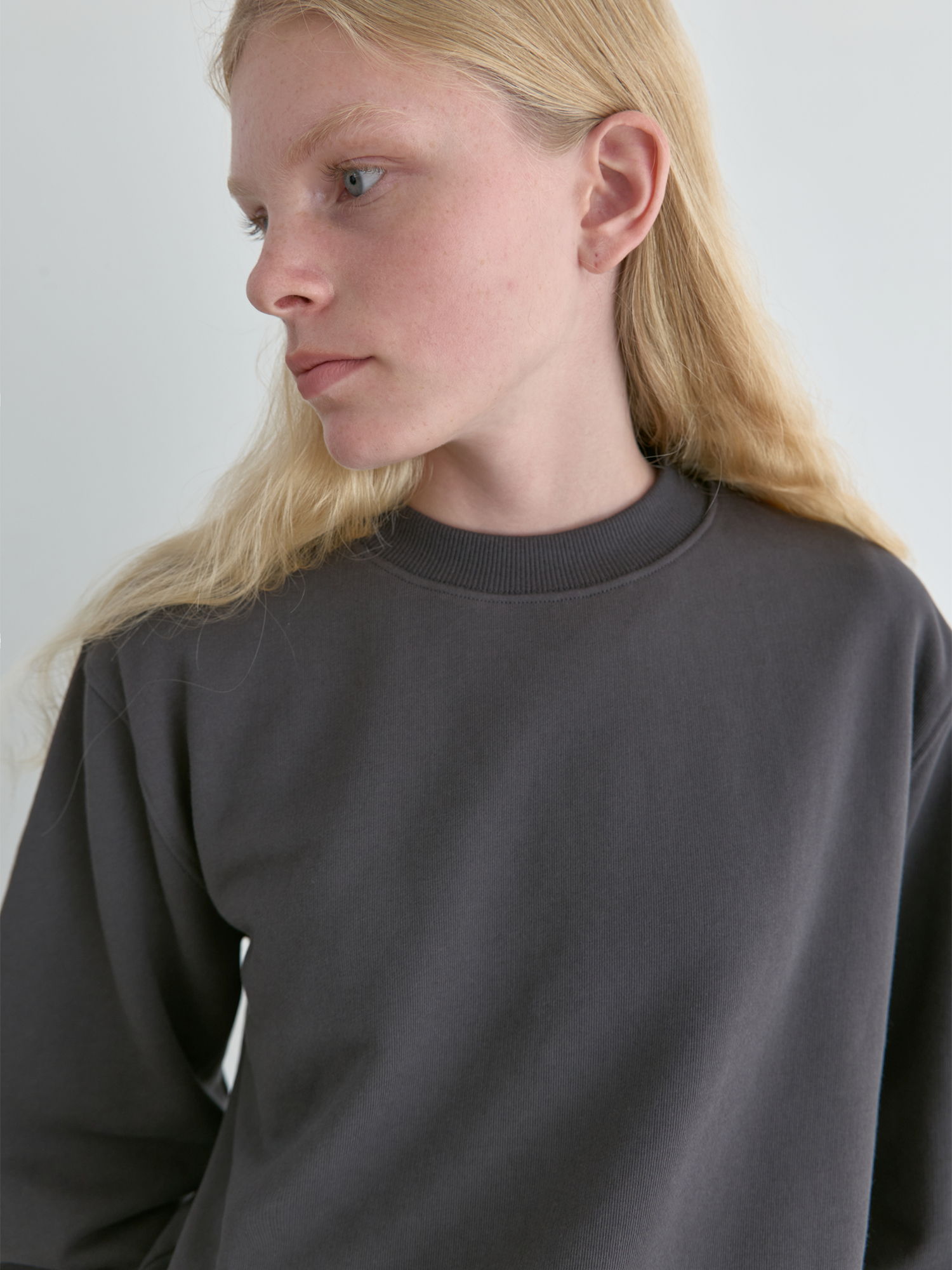 오가닉 코튼으로 제작된 카키시 딥 그레이 맨투맨입니다. 힙 상단에 걸쳐지는 세미 크롭 기장과 안정적인 박스 핏이 균형 잡힌 실루엣을 만들어주며, 2장 소매로 연결된 라운드 쉐입이 자연스럽게 어울립니다. 두께감이 과하지 않은 워시드 쭈리 원단으로 부드럽고 편안하게 착용할 수 있으며, 담백한 카키 그레이 톤이 차분한 무드를 완성합니다. |