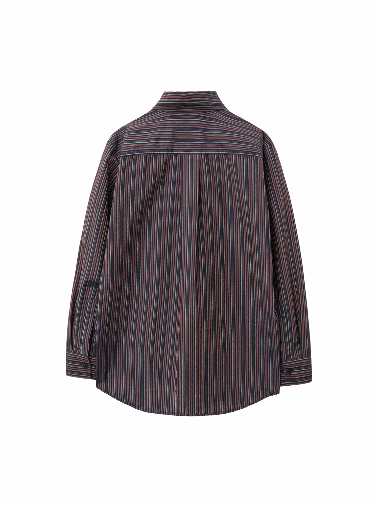 실크와 레이온 혼방으로 제작된 멀티 스트라이프 셔츠입니다. 블랙과 네이비를 중심으로 버건디와 라이트 그레이가 더해져 차분한 컬러 밸런스를 보여줍니다. 힙을 덮는 기장과 드롭 숄더로 편안한 실루엣을 만들고, 옆트임과 소뿔단추 디테일이 담백한 무드를 완성합니다. 세미 루스 핏으로 단독은 물론 가볍게 걸쳐 입기 좋은 아이템입니다. |