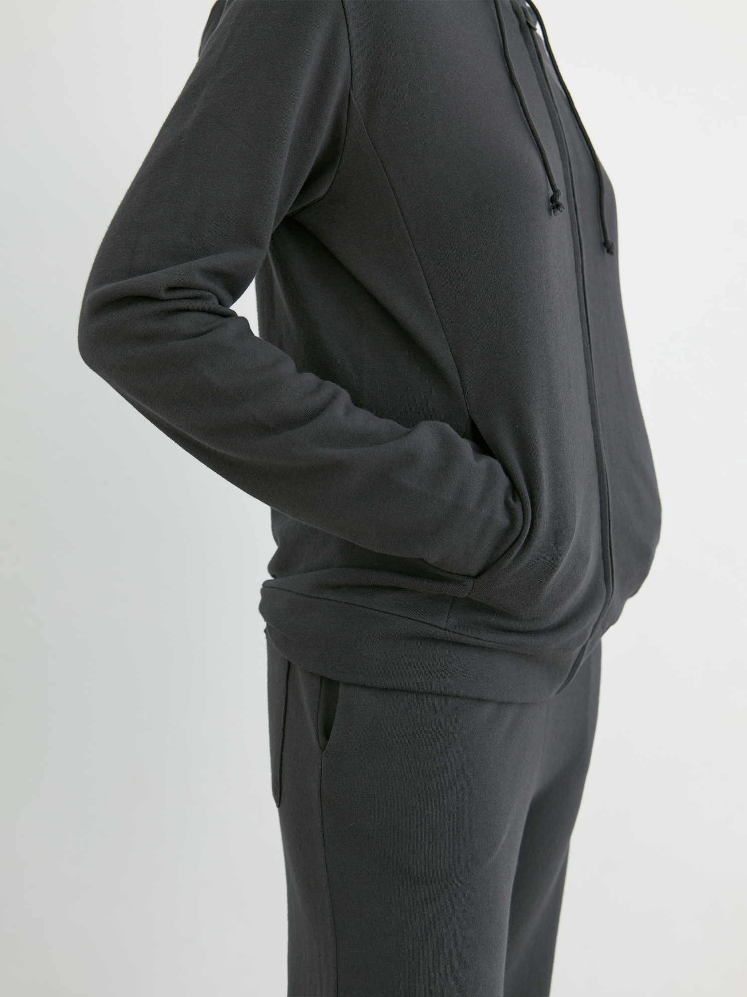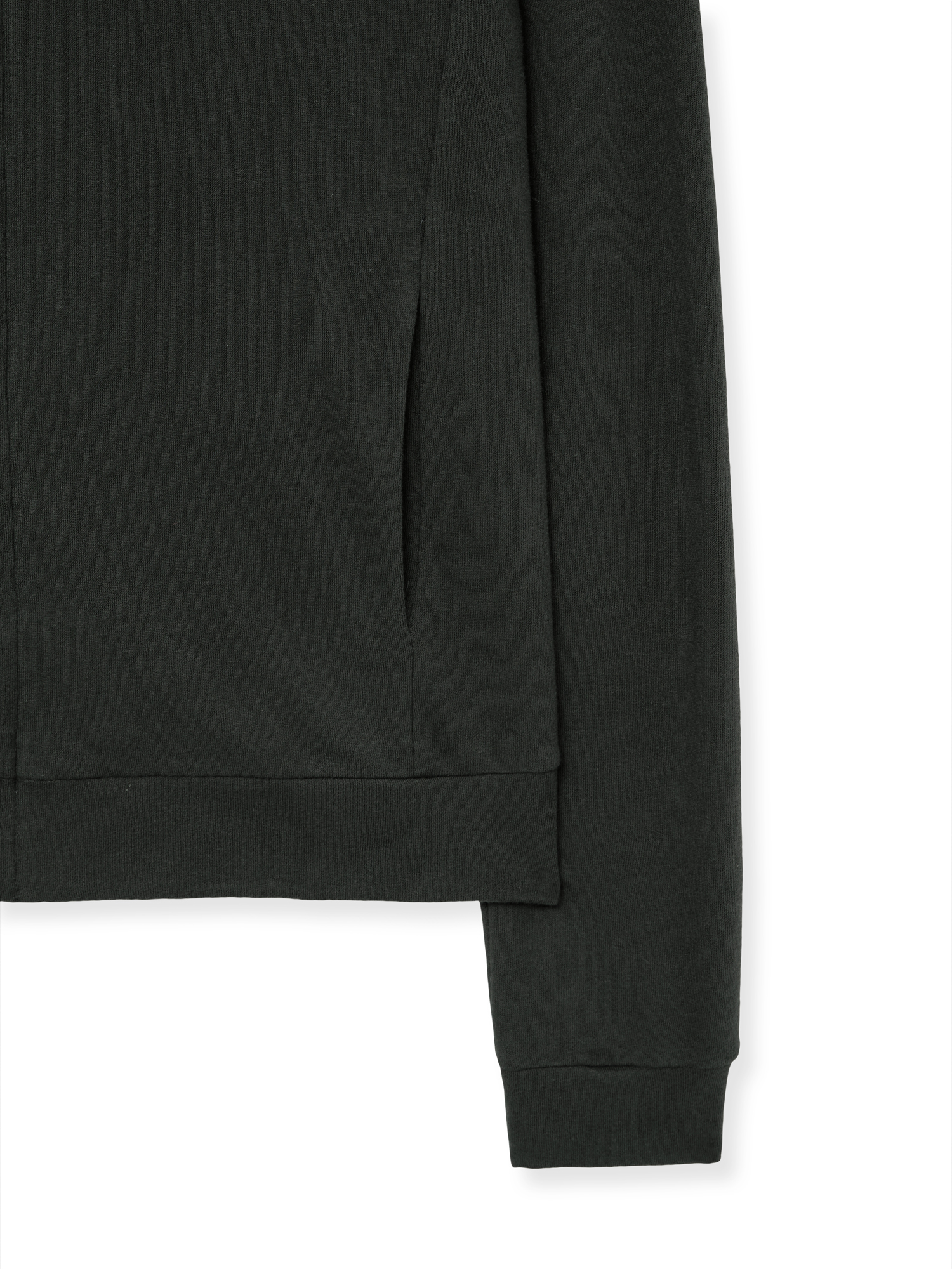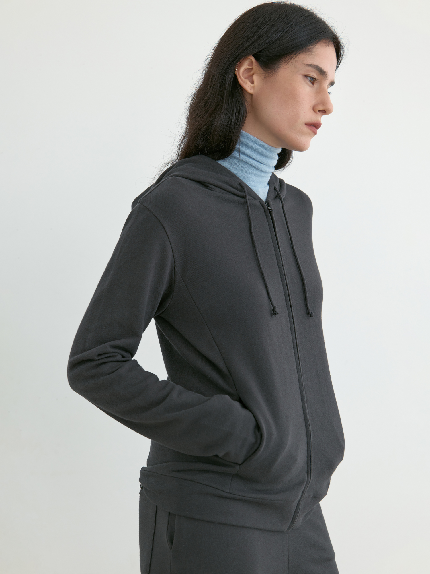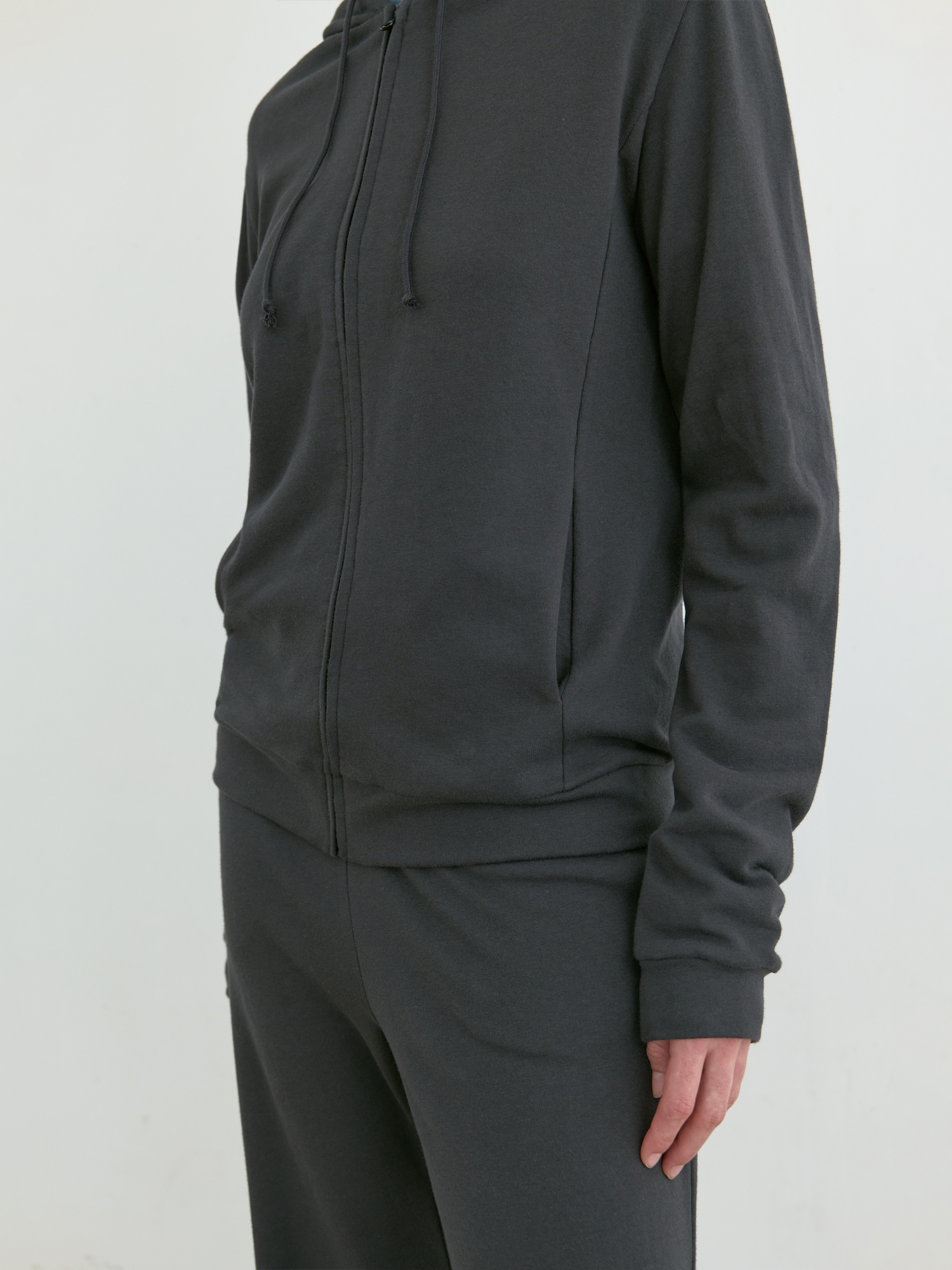 코튼·폴리에스터 혼방 소재로 제작된 딥 애쉬 카키 컬러의 후드 집업입니다. 은은하게 톤다운된 컬러가 차분한 무드를 주며, 부드럽고 유연한 촉감으로 가볍게 착용할 수 있습니다. 두 겹으로 마감된 후드와 히든 지퍼 여밈이 깔끔한 인상을 완성하고, 리브 없이 처리된 밑단과 소매단이 자연스럽게 떨어집니다. 셋업 팬츠와 함께하거나 단독으로도 이지하게 스타일링할 수 있는 아이템입니다. |