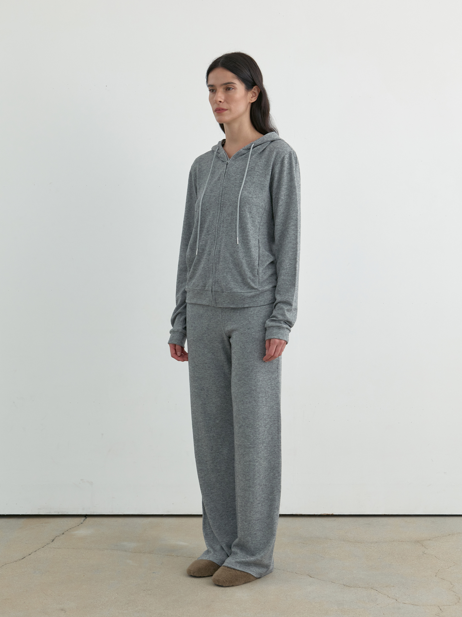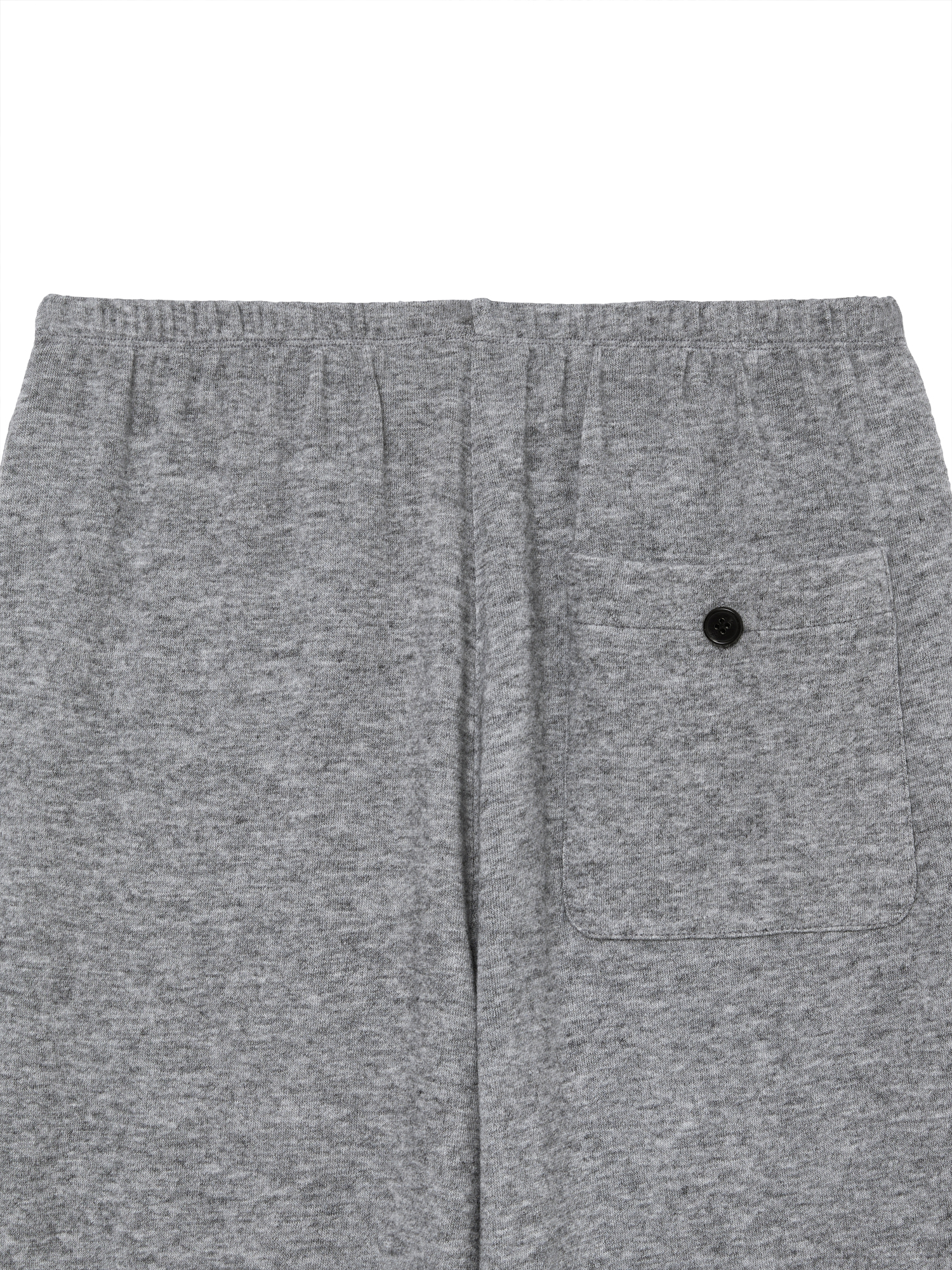 니트 팬츠처럼 자연스럽게 착용할 수 있는 울 져지 팬츠입니다. 유연한 텍스처와 중간톤의 멜란지 그레이 컬러가 부드럽고 차분한 인상을 줍니다. 허리 밴드로 편안하게 착용할 수 있으며, 사이드 포켓과 내추럴 버튼이 달린 힙 포켓이 실용성을 더합니다. Soft Hood Zip-Up과 함께 조합해 이지한 스타일을 완성할 수 있습니다. |