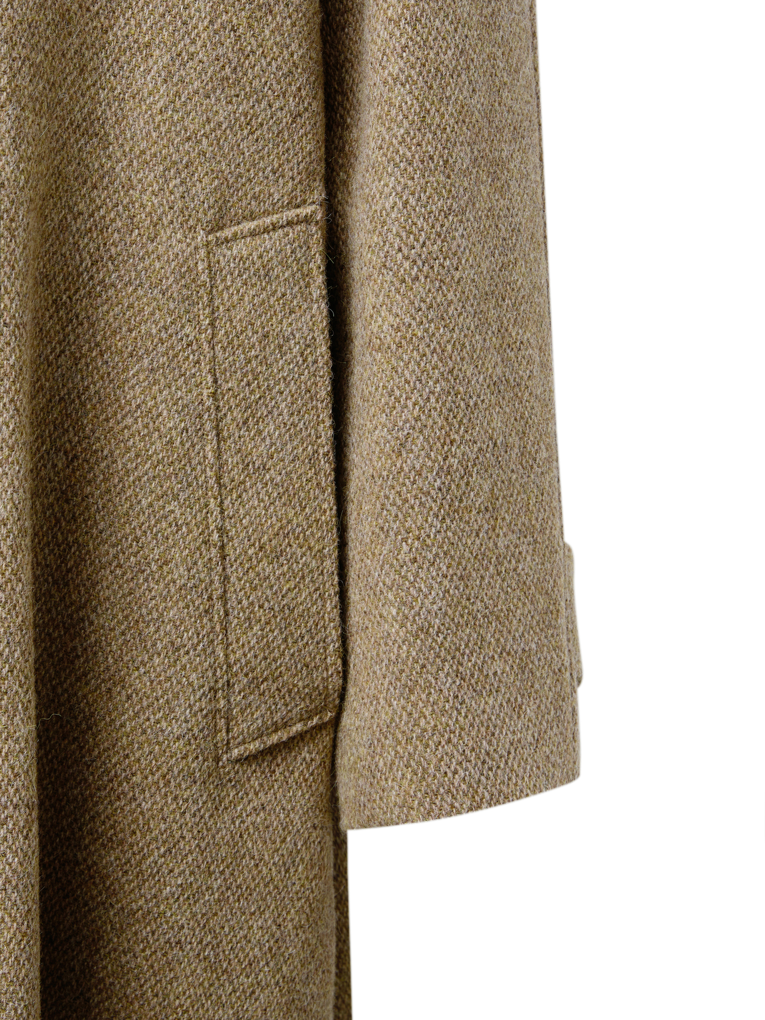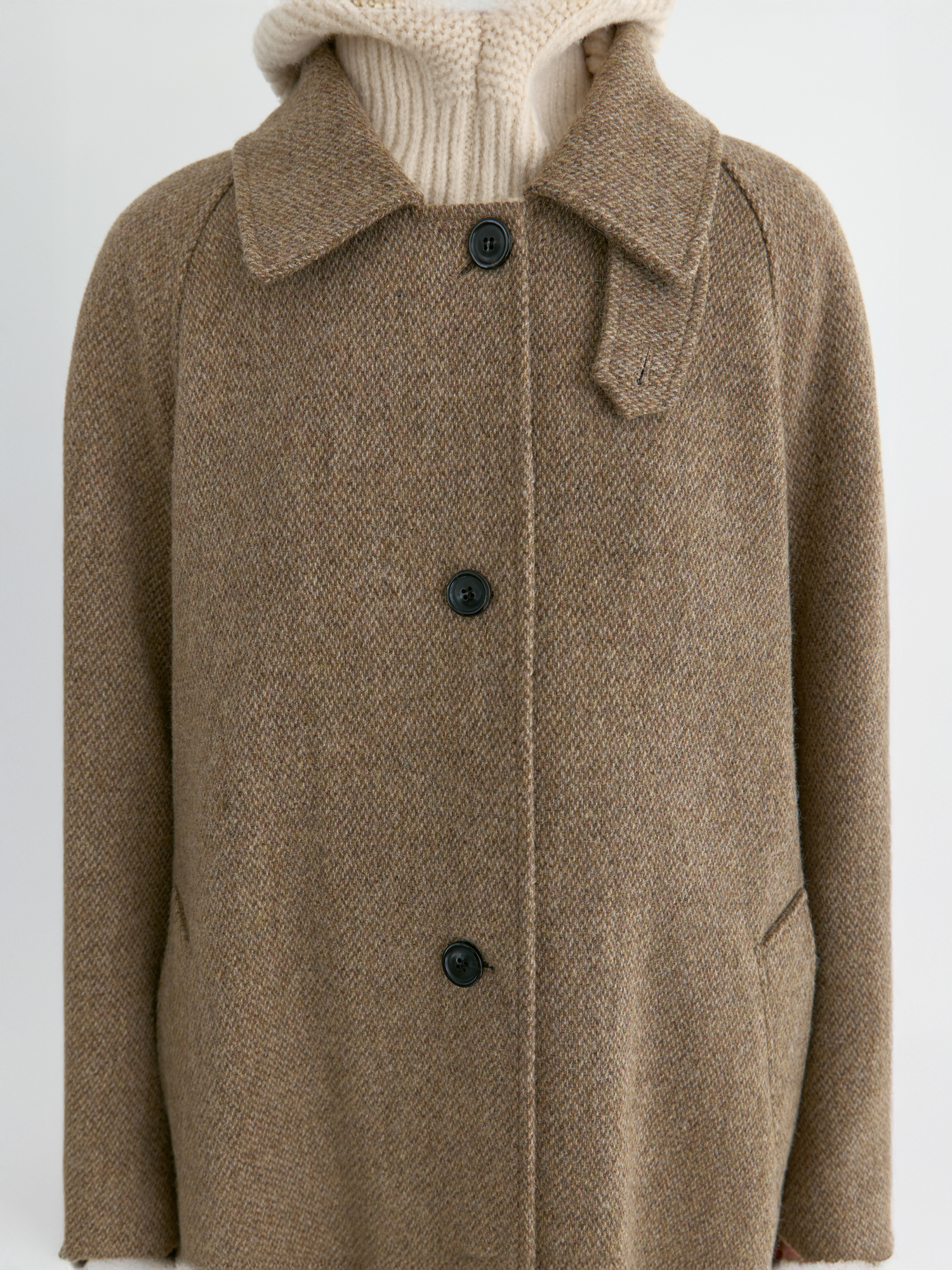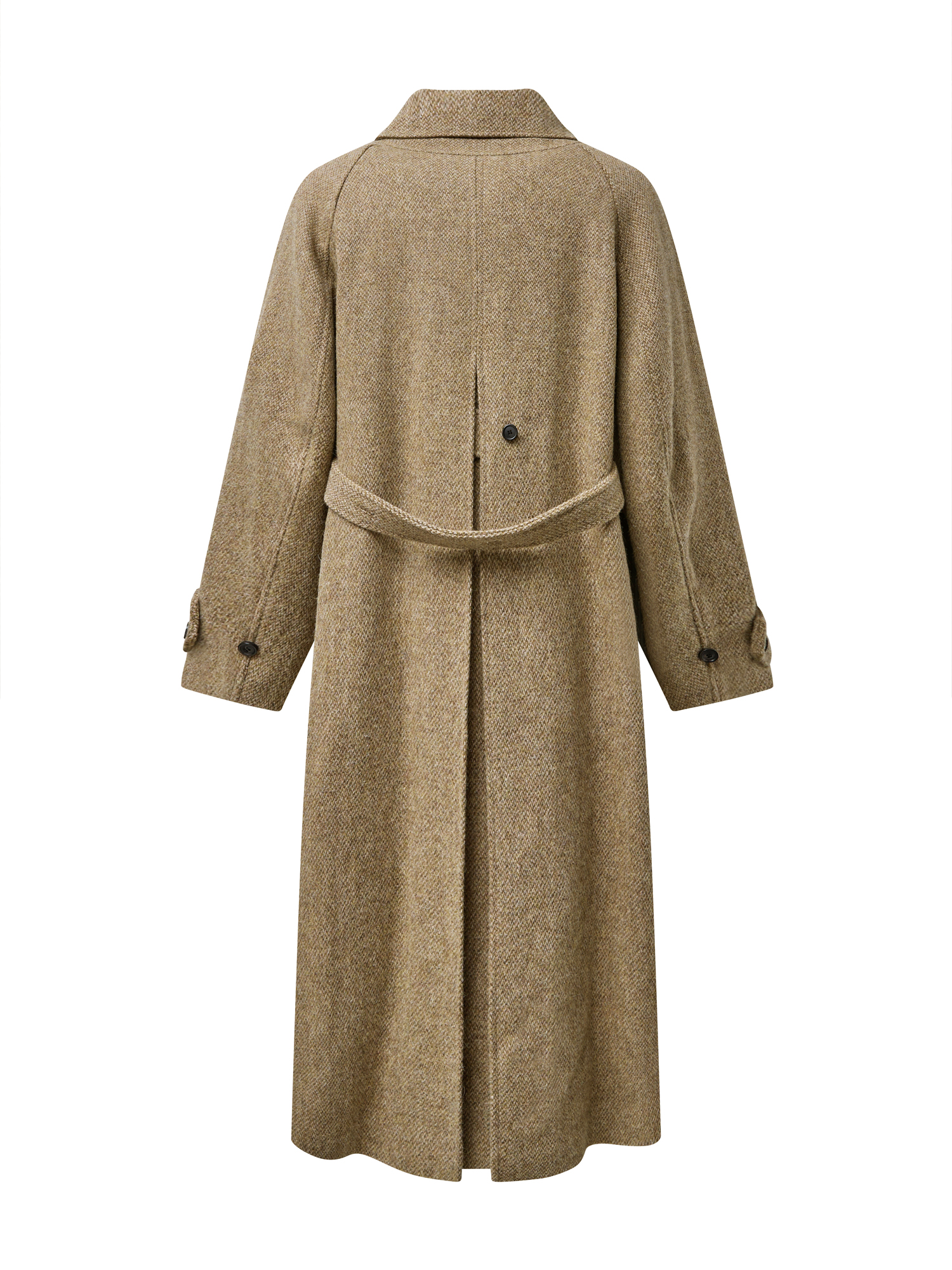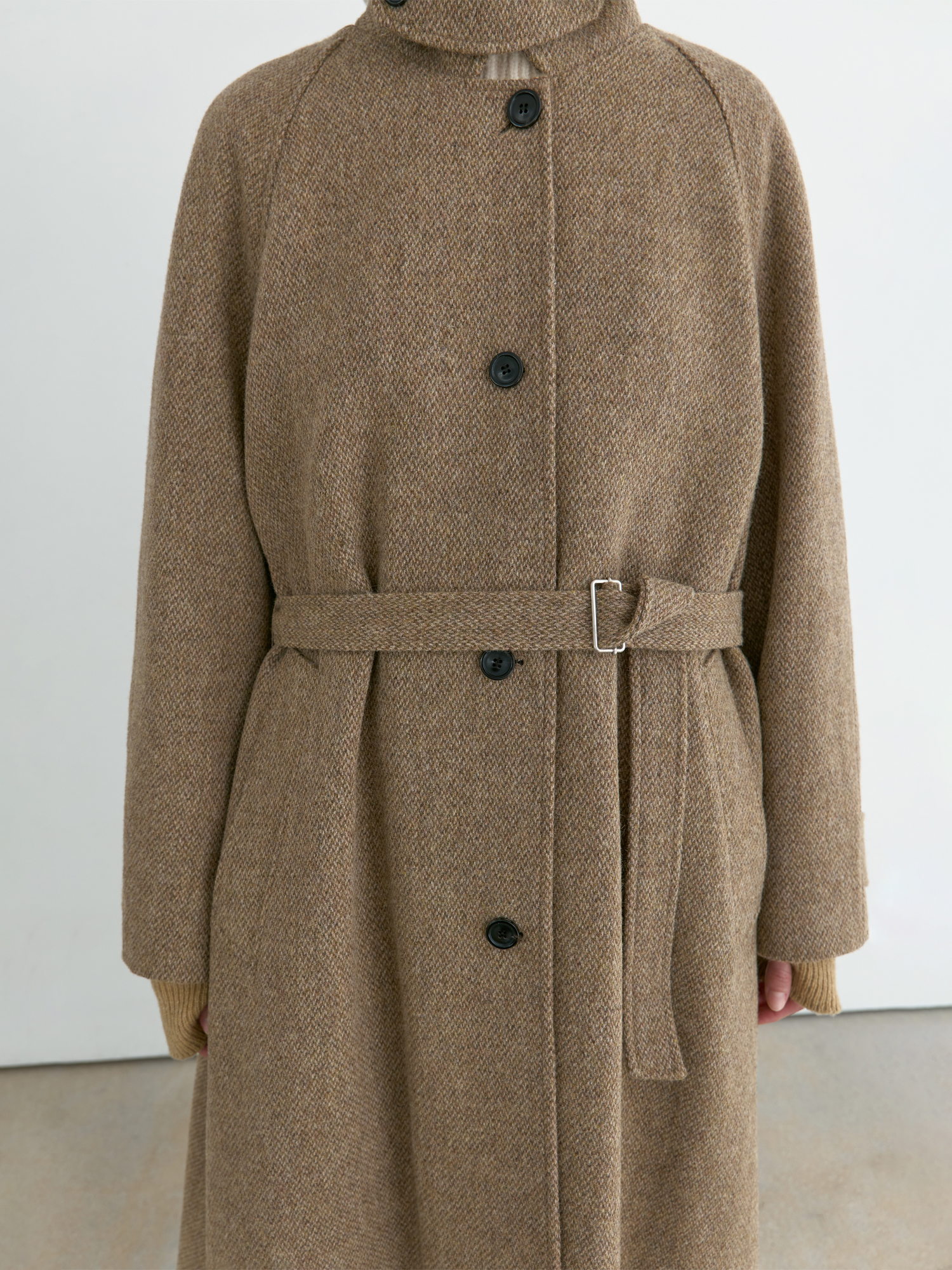 자연스럽게 퍼지는 세미 A라인 실루엣의 롱 코트입니다. 종아리를 안정적으로 덮는 기장감과 여유 있는 목 파임, 입체적인 곡선의 소매 볼륨이 우아한 라인을 형성합니다. 뒤 중심의 미니멀한 브랜치 디테일과 둥글게 설계된 백넥 절개가 정돈된 구조감을 주며, 고정 및 히든 연출이 모두 가능합니다. 세 가지 소재 컬러 구성으로, 각기 다른 텍스처와 보온 밸런스를 갖춘 윈터 아우터입니다. -------------------------- 알파카 20%·울 80%의 트위드 텍스처가 돋보이는 카멜 버전입니다. 원단 조직감을 보완하기 위해 기모 처리된 안감을 더해 보온성을 높였습니다. 부드럽게 섞인 멜란지 카멜 컬러가 자연스럽고 깊이 있는 겨울 톤을 연출하며, 차가운 계절에 포근하게 감싸주는 안정적인 코트입니다.