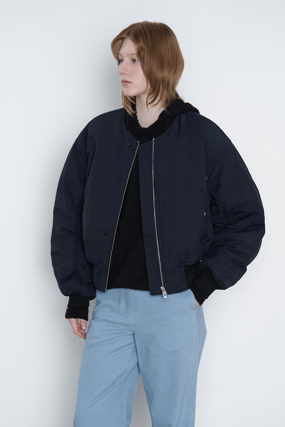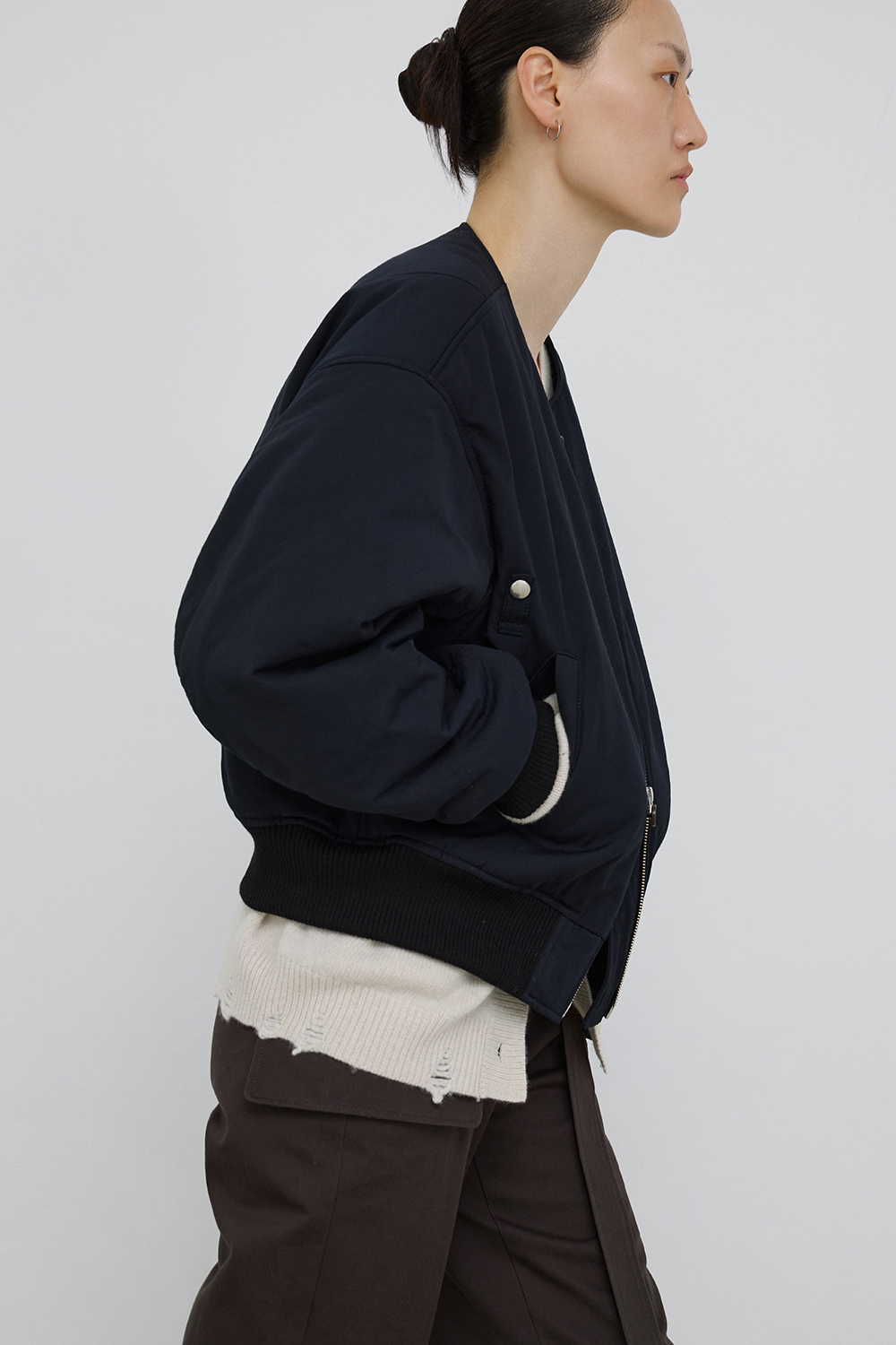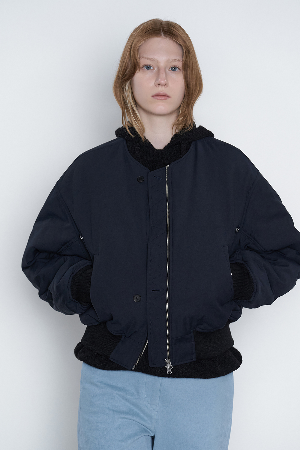 COLLARLESS BOMBER JUMPER _ D/NAVY