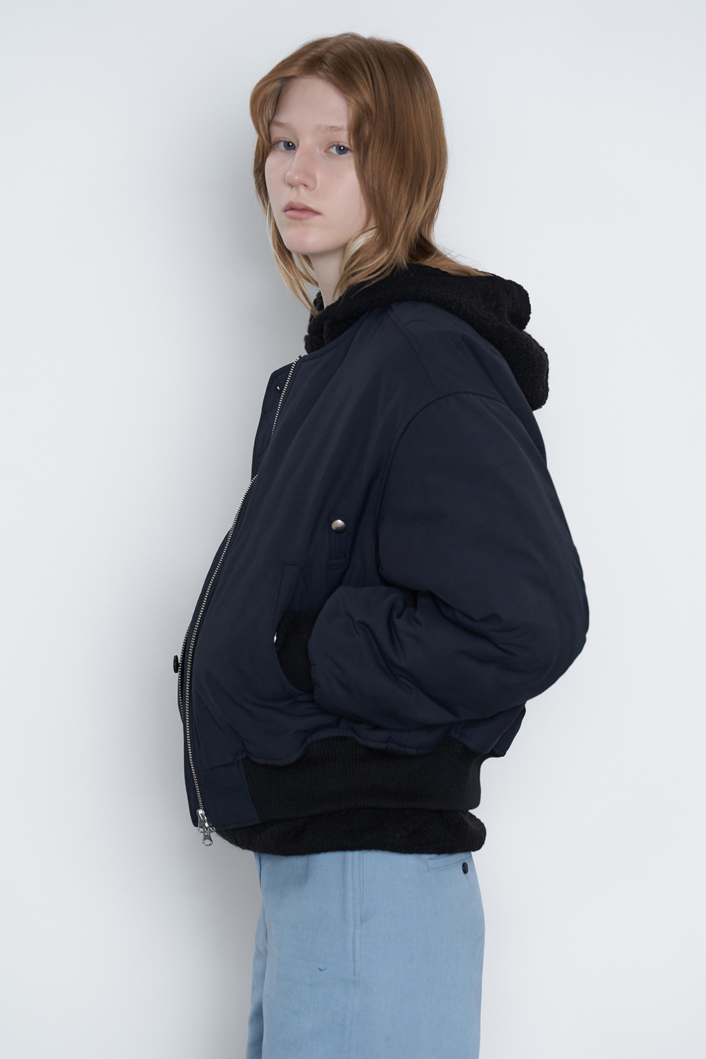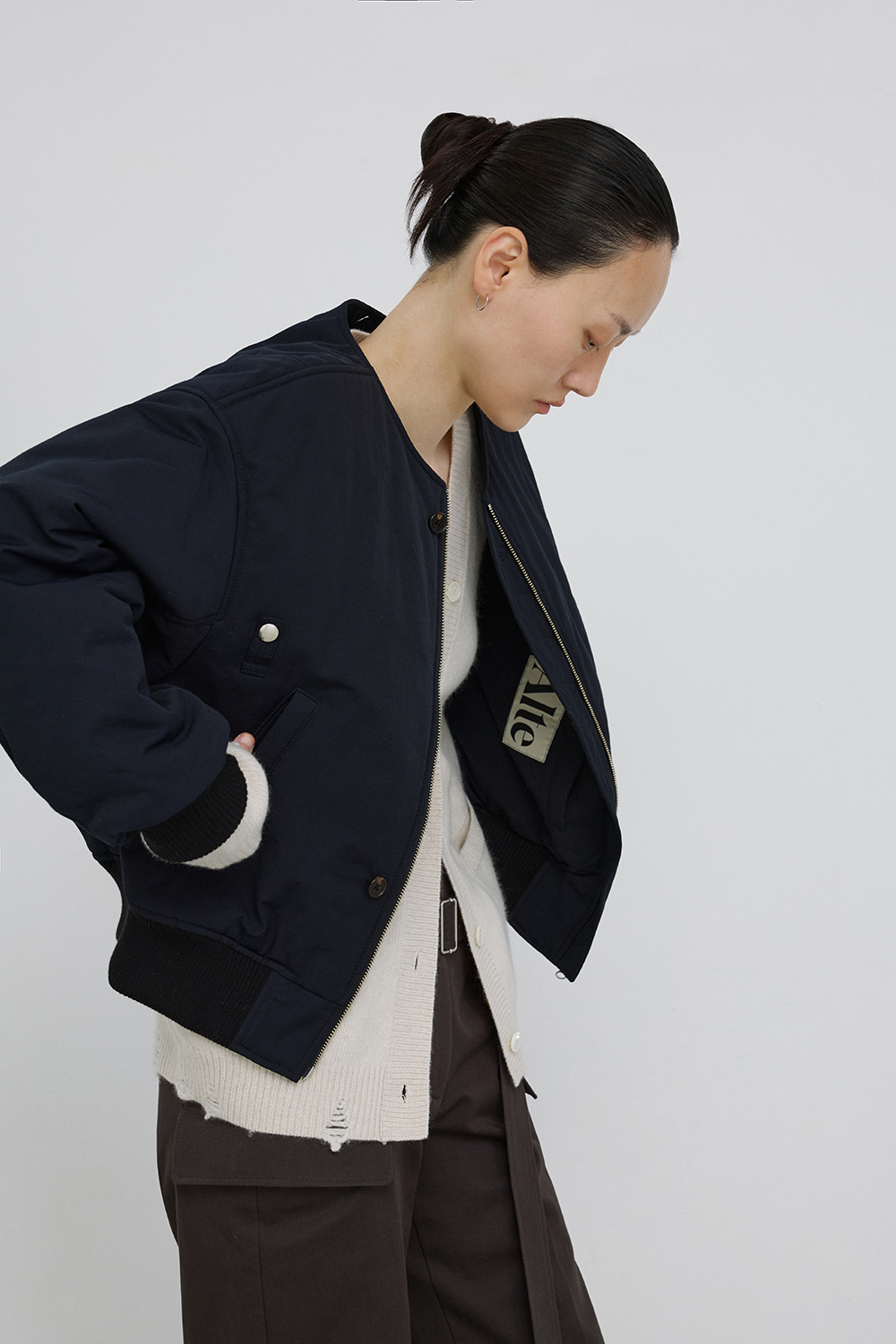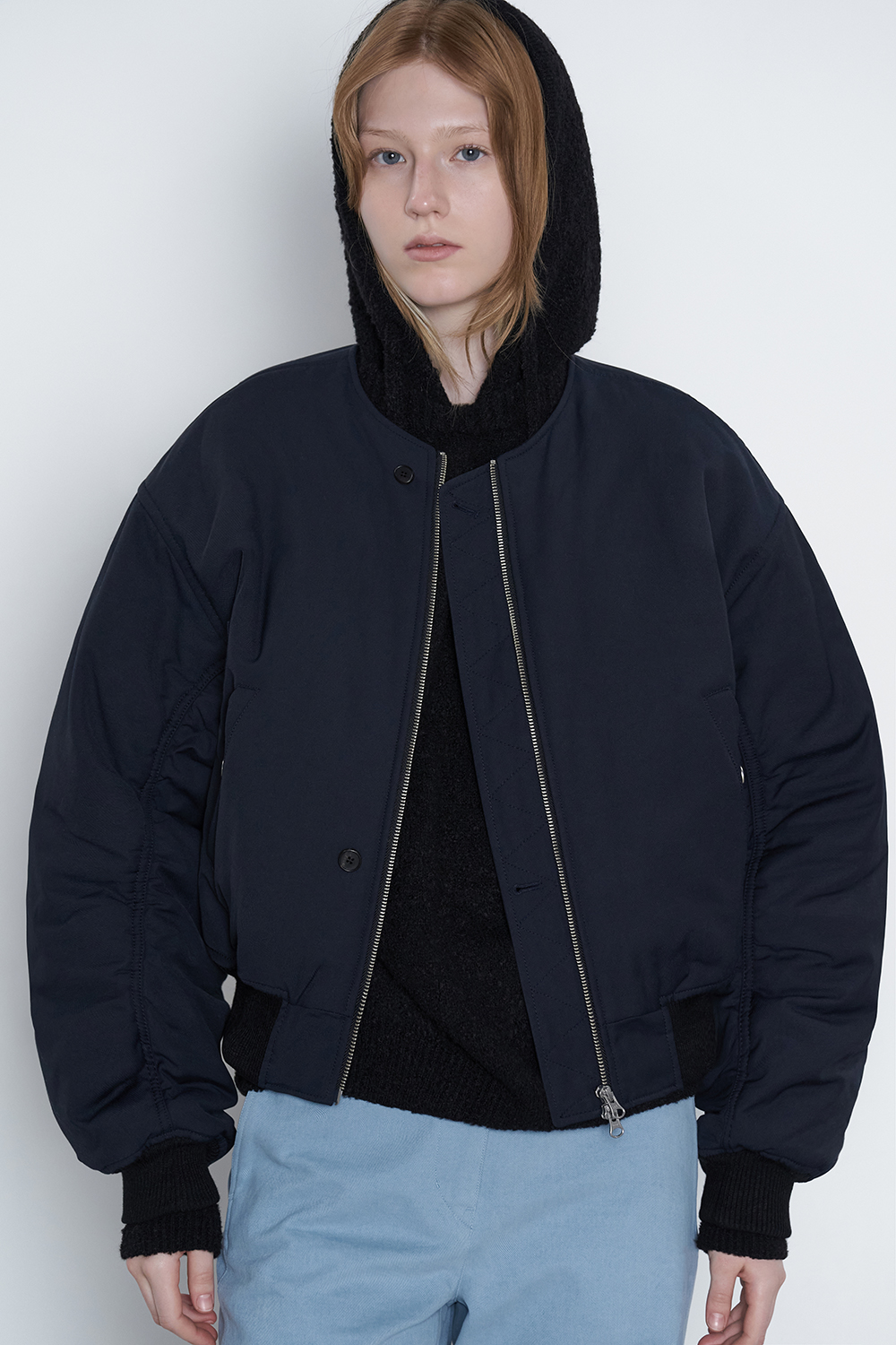 COLLARLESS BOMBER JUMPER _ D/NAVY