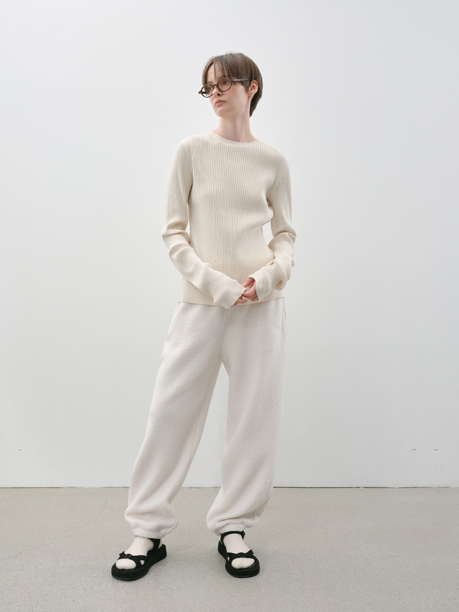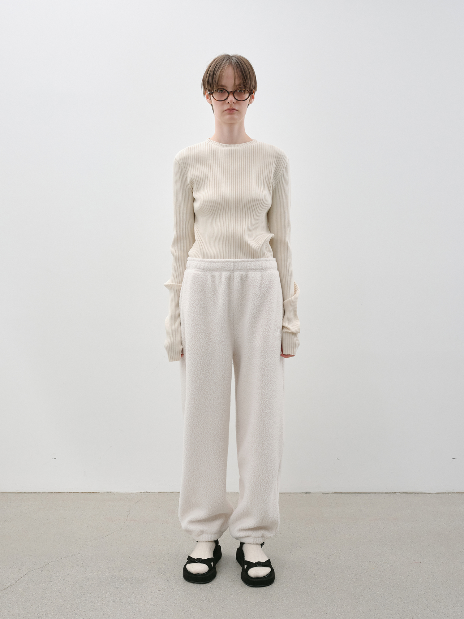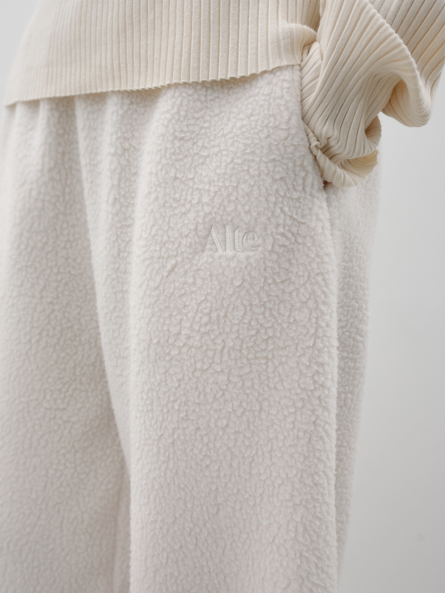 플러피하게 가공된 폴라 플리스 소재의 조거 팬츠입니다. 부드럽고 가벼운 두께감이면서도 보온성이 높아 겨울 시즌 데일리 웨어로 편안하게 착용됩니다. 허리와 밑단 밴딩으로 실루엣이 안정적으로 잡히며, 안쪽 스트링으로 조절이 가능해 활동성이 좋습니다. 크리미한 화이트 톤과 ALTE 로고 자수가 담백한 분위기로 마무리됩니다. |
