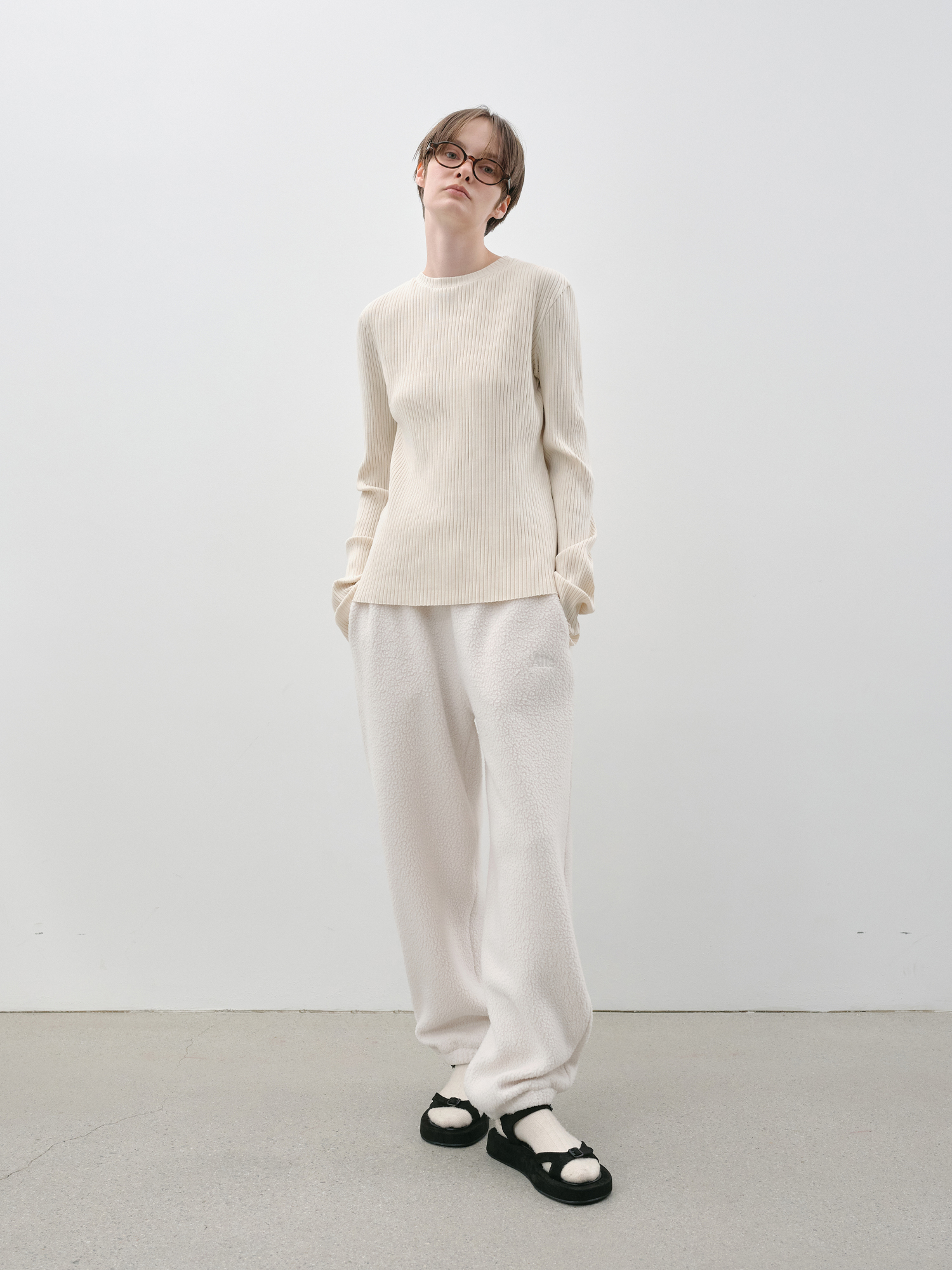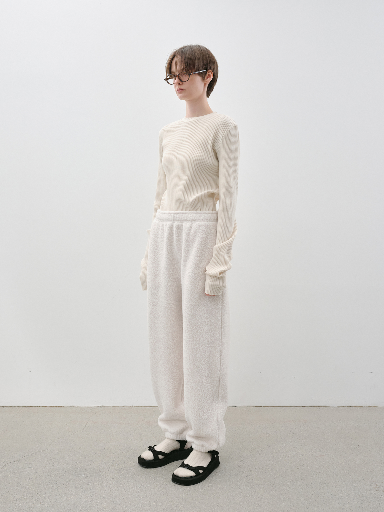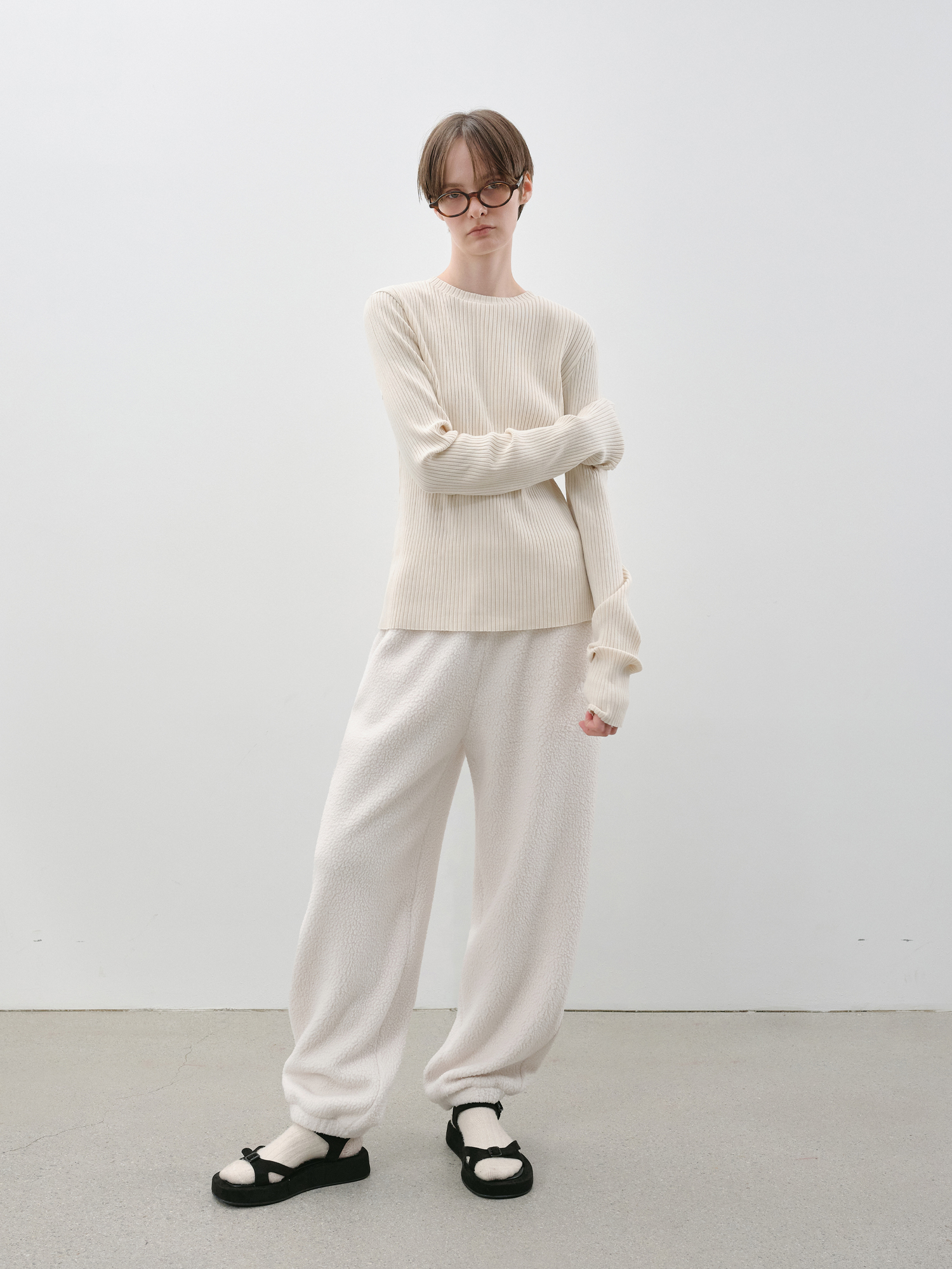 플러피하게 가공된 폴라 플리스 소재의 조거 팬츠입니다. 부드럽고 가벼운 두께감이면서도 보온성이 높아 겨울 시즌 데일리 웨어로 편안하게 착용됩니다. 허리와 밑단 밴딩으로 실루엣이 안정적으로 잡히며, 안쪽 스트링으로 조절이 가능해 활동성이 좋습니다. 크리미한 화이트 톤과 ALTE 로고 자수가 담백한 분위기로 마무리됩니다. |