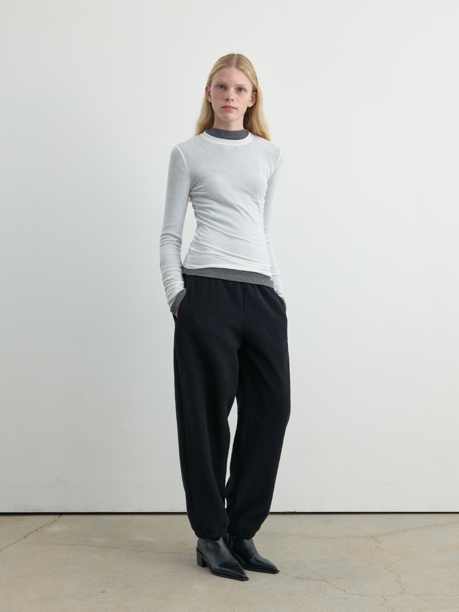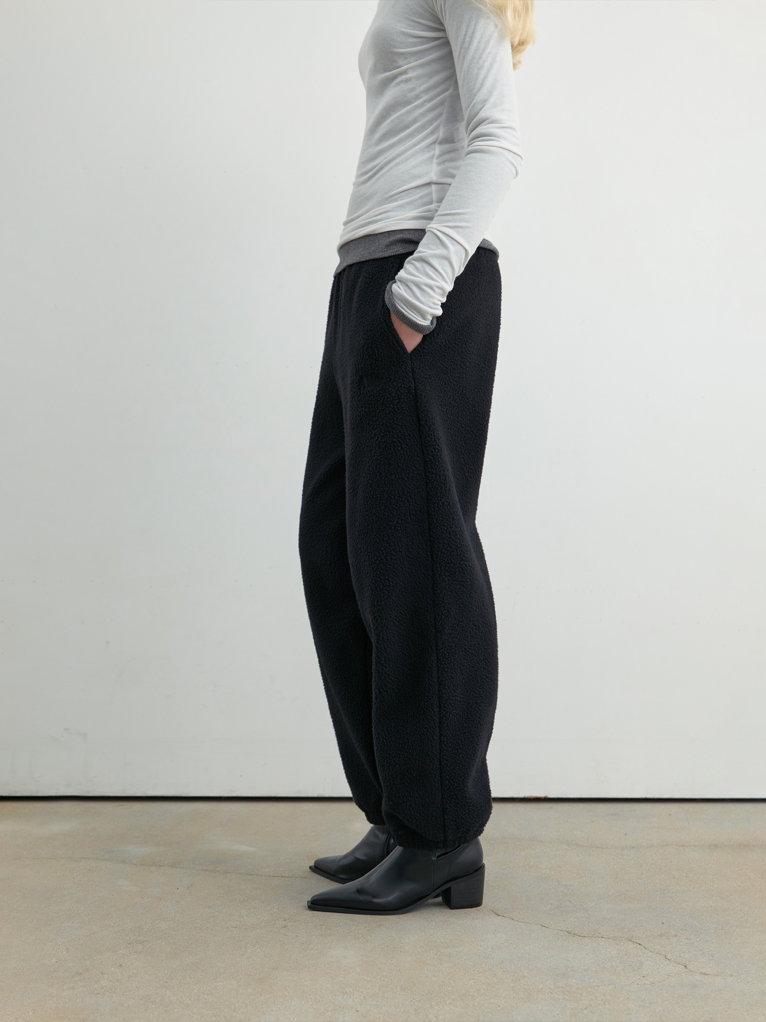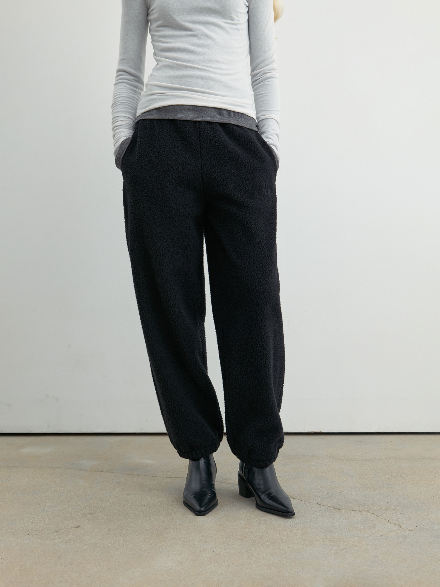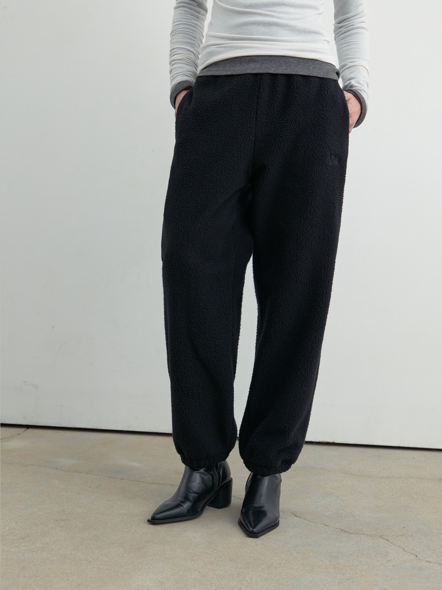 플러피하게 가공된 폴라 플리스 소재의 조거 팬츠입니다. 가벼우면서도 보온성이 뛰어나 겨울 시즌 편안한 데일리 팬츠로 착용될 아이템입니다. 허리와 밑단은 밴딩으로 안정감 있게 잡히며, 안쪽 스트링으로 사이즈 조절이 가능합니다. 깊은 블랙 톤과 ALTE 로고 자수가 깔끔하고 모던한 무드를 완성합니다. |