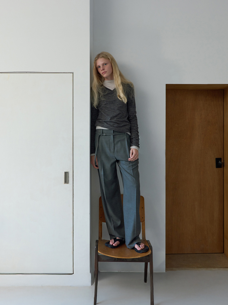 [RESTOCK] V-NECK KNIT TEE _ GREY STRIPE